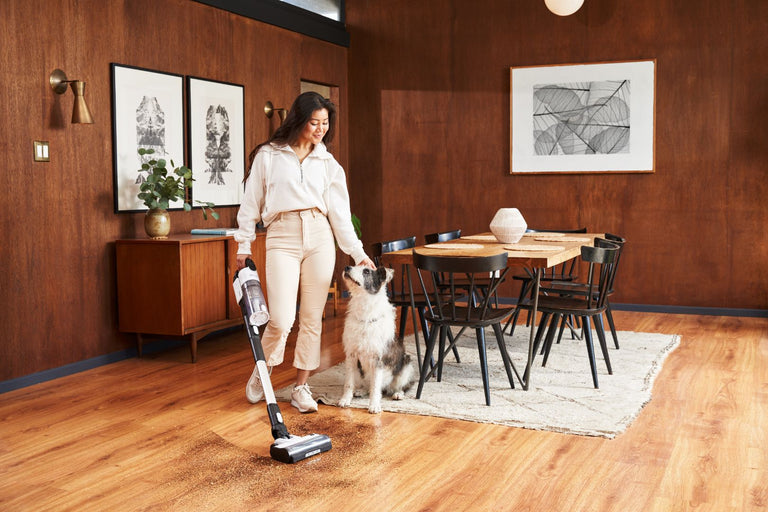 This vacuum is ideal for pet owners and is our best vacuum for pet hair. It has tangle-resistant technology, making it easier to remove pet hair. Its extended battery life ensures uninterrupted cleaning sessions for up to 50 minutes in Eco Mode using the Pet Tool or Crevice Tool, while the roller brush effectively removes pet dander.
