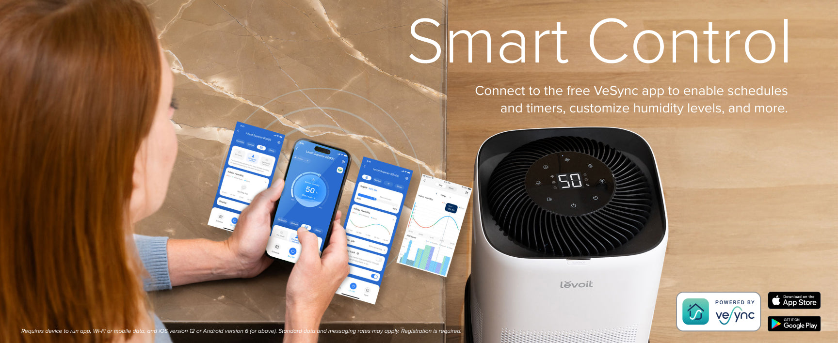 - Smart Control: Adjust settings, create schedules, connect to voice assistants, and more in the VeSync app