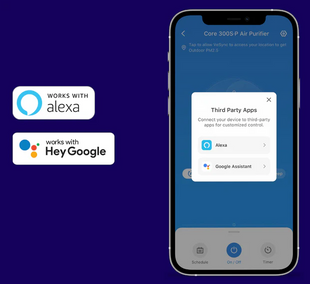 Connect to Amazon Alexa or Google Assistant™ to control the air purifier when your hands are full.
